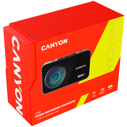 Canyon DVR10GPS, 3.0” IPS (640×360), FHD 1920×1080@60fps, NTK96675, 2 MP CMOS Sony Starvis IMX307 image sensor, 2 MP camera, 136° Viewing Angle, Wi-Fi, GPS, Video camera database, USB Type-C, Supercapacitor, Night Vision, Motion Detect