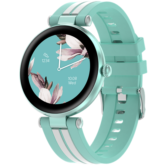 CANYON Semifreddo SW-61, Rtl8762dt, 1.19” Amoled 390x390px, oncell TP, 192KB RAM, 3.7V 190mAh battery, Green alumunum alloy case middle frame+plastic bottom case+green and white silicone strap + silver strap buckle. Strap: 261*18mm 37.8g
