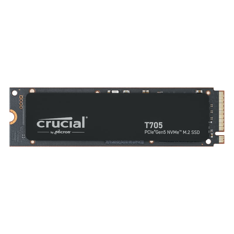 Hold on tight, the Crucial T705 Gen5 NVMe SSD is taking Gen5 performance to the maximum level. With sequential reads and write speeds of up to 13,600MB/s and 10,200MB/s (up to 1,400K/1,750K IOPS random reads/writes), the T705 offers faster gaming, video editing, 3D rendering and heavy workload application processing. Built with Micron’s 232-layer TLC NAND and ready for use with your motherboard’s heatsink, the Crucial T705 Gen5 SSD is fully optimized for performance, takes full advantage of Microsoft® DirectStorage, and is backwards compatible with Gen3 and Gen4 motherboards. With SSD speeds nearly 2x faster than Gen4, you’ll never look back after using the Crucial T705.