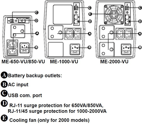– USB communication port and RJ-11/RJ-45 protection